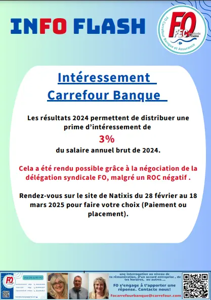 FO Carrefour Banque signataire de l'avenant  de  l'accord de l'interessement