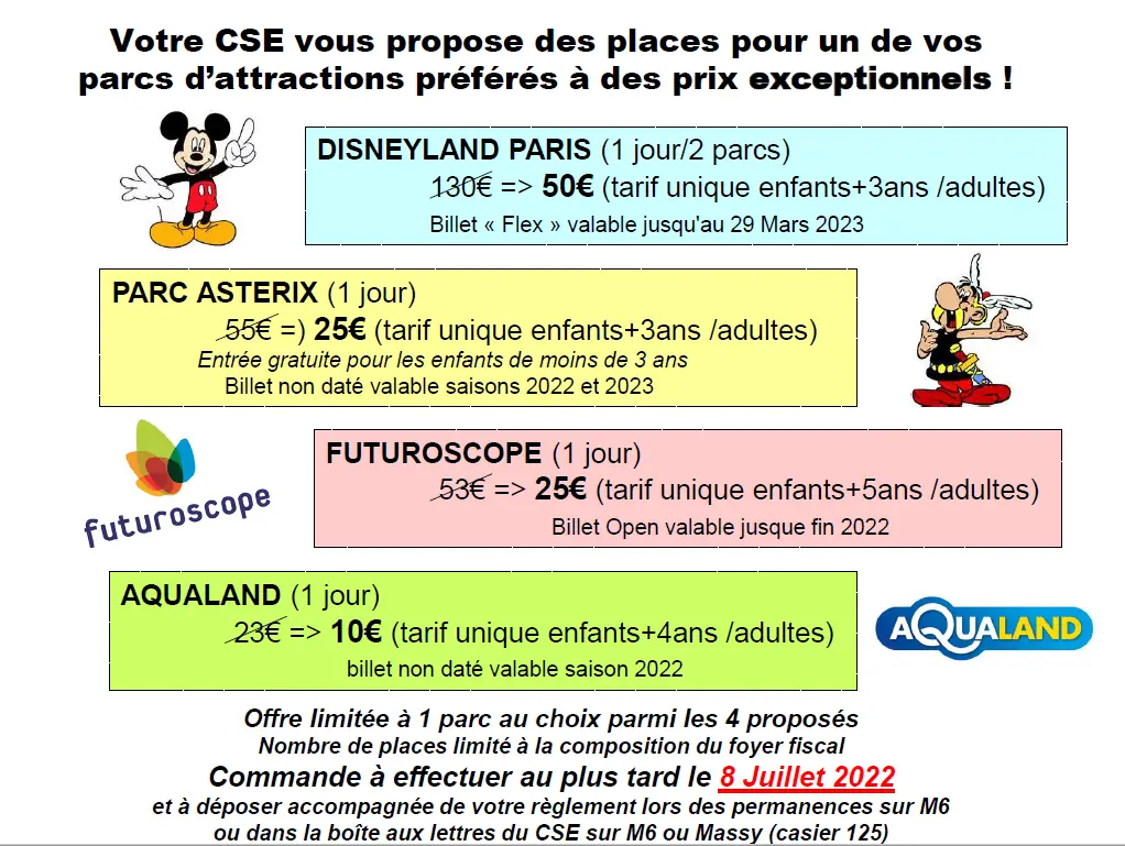 Votre CSE : Commande de place Parcs d'attractions